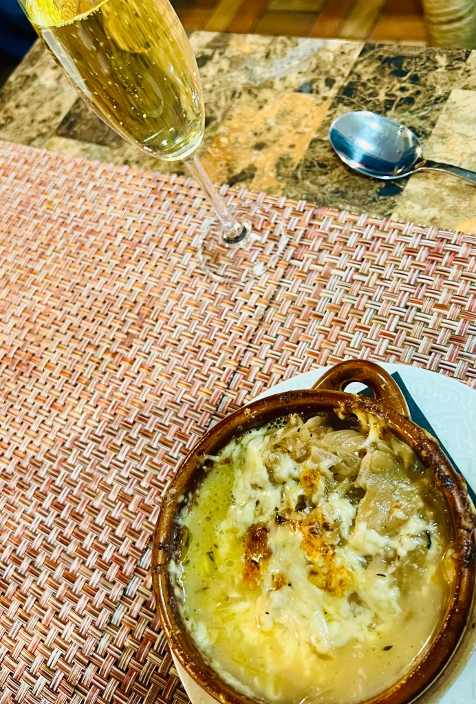 I had the pleasure of dining at La Francaise Bistrot and I was not disappointed. It’s in a cozy space that seats about 30 people and has a great french bistro menu. When trying a new french restaurant I have to try the french onion soup to see how it compares to others and La Francaise’s Bistrot version seemed like slight twist with a delicious broth and just the right amount of cheese. It went down well with Taittinger champagne, which is sold by the glass.
