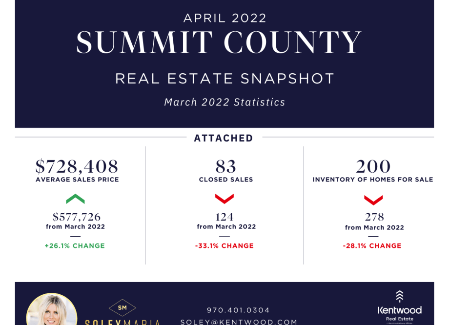 The average sold price for single family homes is down just slightly from February, but a much larger increase year over year at 30.3%. Number of sold homes went from 26 in Feb to 33 in March, which is a decrease from 49 in March 2021. Inventory was very similar between February and March, with an increase of 1 more available listing in March and both months down 10 homes since the same time in 2021.