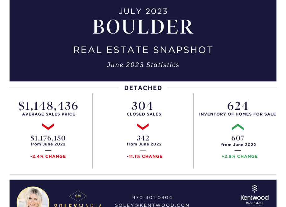 Single family homes in Boulder County held pretty steady in price with a slight decline of -2.4% for the average sales price for the month of June. Closed sales dropped by -11.1% YOY and there was a slight increase in inventory of +2.8%, unlike many … Continue reading Boulder July 2023 Market Update